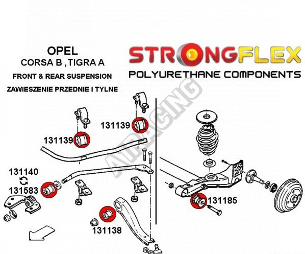 Opel Corsa B StrongFlex Sport sestava silentbloků jen pro přední nápravu 8 ks obsahuje: