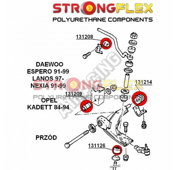 Opel Kadett E StrongFlex sestava silentbloků jen pro přední nápravu 10 ks obsahuje: