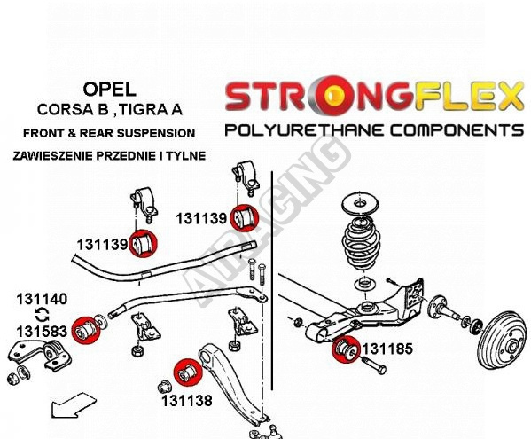 Opel Tigra A StrongFlex Sport sestava silentbloků pro přední a zadní nápravu 10 ks obsahuje: