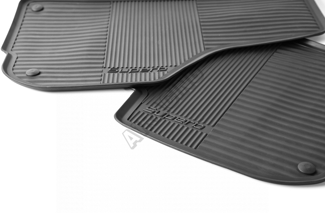 Sada obsahuje dva predné autokoberce s nápisom "SUPERB" a dva zadné koberce bez nápisu. Sú vyrobené z kvalitnej gumovej zmesi, ich povrch nekĺže a dokonale zachytáva vlhkosť i nečistoty. Svojim tvarom dokonale vypĺňajú priestor pod nohami cestujúcich, čím robia interiér vozidla omnoho útulnejší, a pasažieri si tak užijú pohodlnú jazdu nehľadiac na počty najazdených kilometrov.