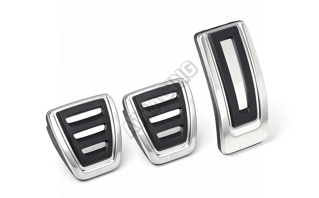Originálna trojdielna sada pedálov z ušľachtilej nerezovej ocele. Sada je určená na plynový pedál, brzdu a spojku. Gumené plôšky proti skĺznutiu.