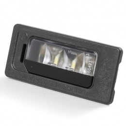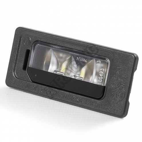 Moderné Originál Škoda osvetlenie registračnej značky s bielym osvetlením.