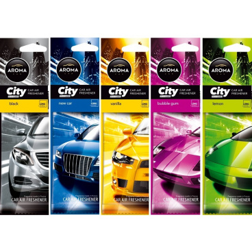 AROMA CAR CITY BLACK: Moderný papierový osviežovač vzduchu na zavesenie do auta, vyrobený zo surovín najvyššej kvality. Je to vlastne náhrada za klasický stromček, ktorý mal v aute už snáď každý. Skvele zapadá do moderného mestského štýlu a ideálne kombinuje originalitu s jemnosťou.