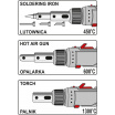 Pájka dále nabízí plynulé nastavení velikosti plamene, plynovou spoušť a rozkládací stojan a dlaší pájecí příslušenství.