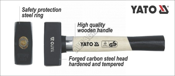 Kvalitní kovová palička Yato o hmotnosti 1500 gramů s dřevěnou násadou .