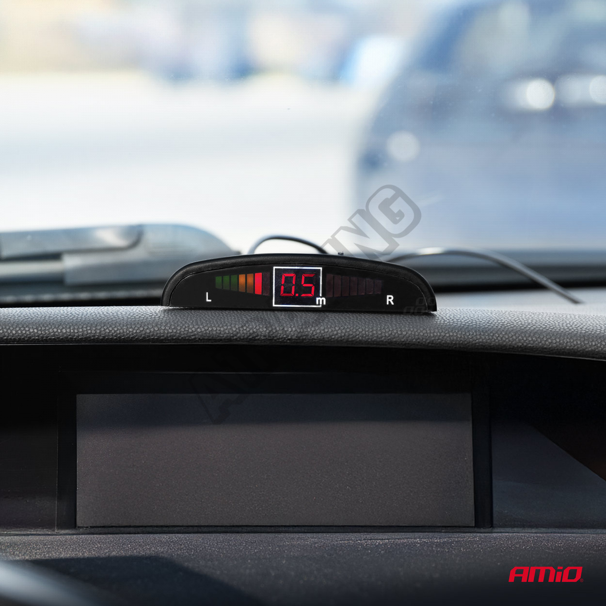 LED displej ukazuje vzdialenosť od prekážky s presnosťou na desatiny metra. Má tiež vstavaný reproduktor (bzučiak), ktorý varuje s možnosťou úplného stíšenia pomocou prepínača na kryte.