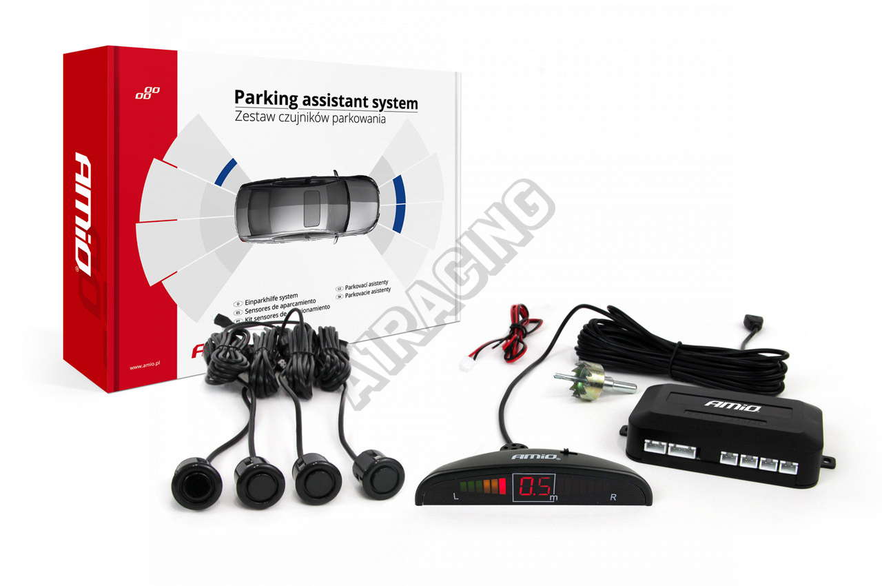 Sada parkovacích senzorov LED so 4 čiernymi senzormi GOLD 18 mm AMIO-01577