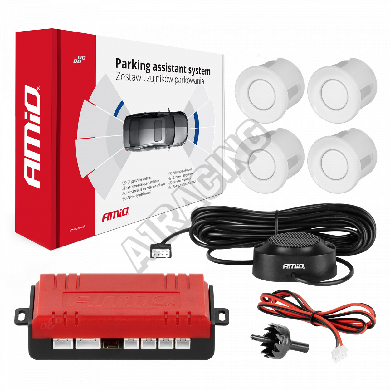 Parkovací systém s akustickou signalizáciou 4 biele senzory (vždy možno dokúpiť samotné čidlo viď súvisiace produkty nižšie)