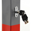 Zábrana je tvořena robustní konstrukcí s povrchovou úpravou vhodnou do venkovních prostor. Zamykání je řešeno zámkem ve vrchní části zábrany.