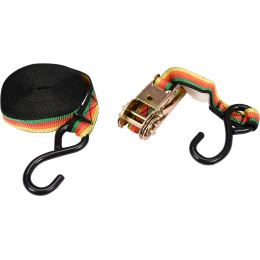 Upínací ráčnový popruh s kovovými háky pro zajištění těžkého nákladu. Ráčna je celokovového proveden