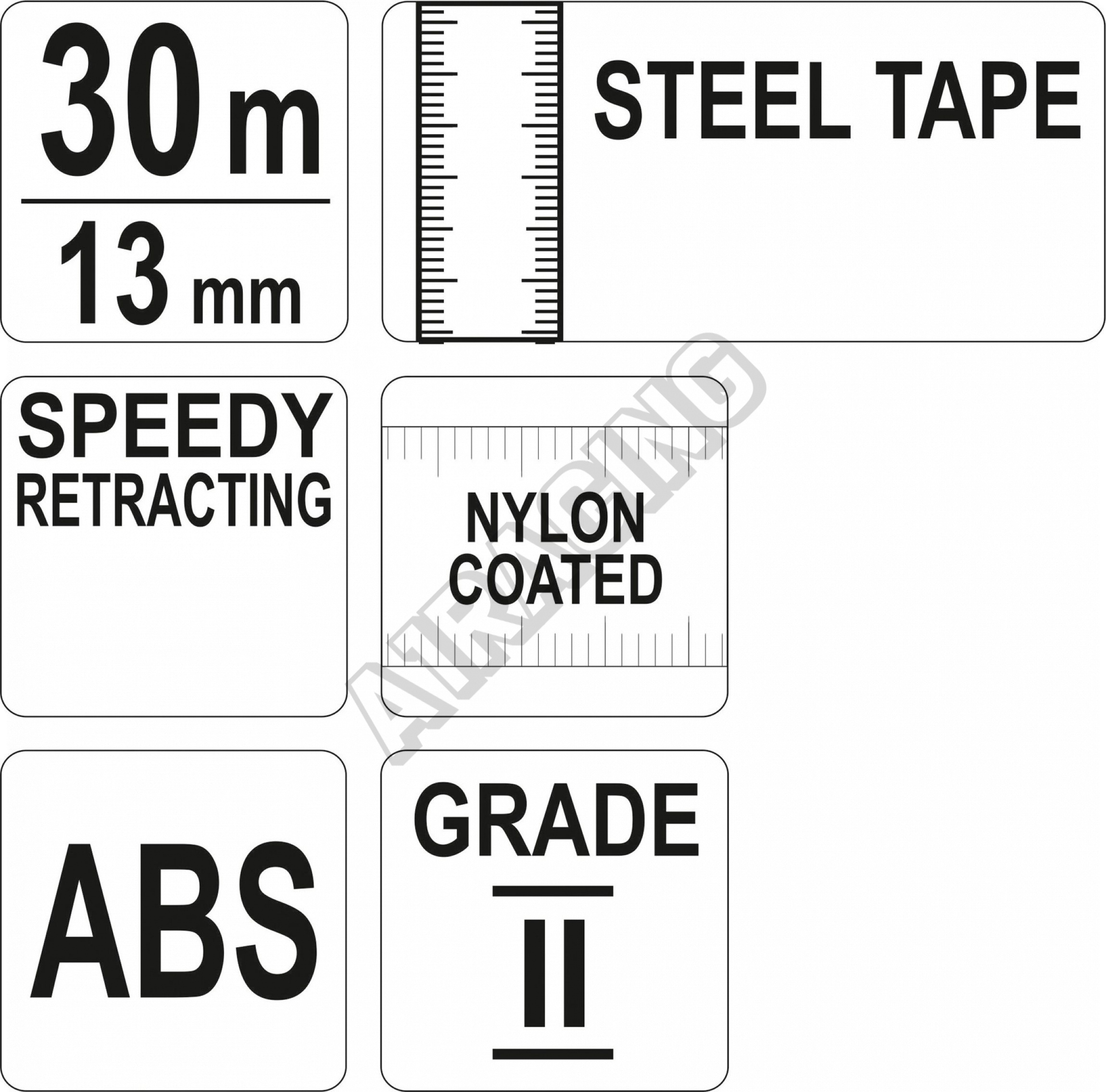 Meracie pásmo s dĺžkou 30 m so šírkou 13 mm. Určené na meranie veľkých vzdialeností v otvorenej obla