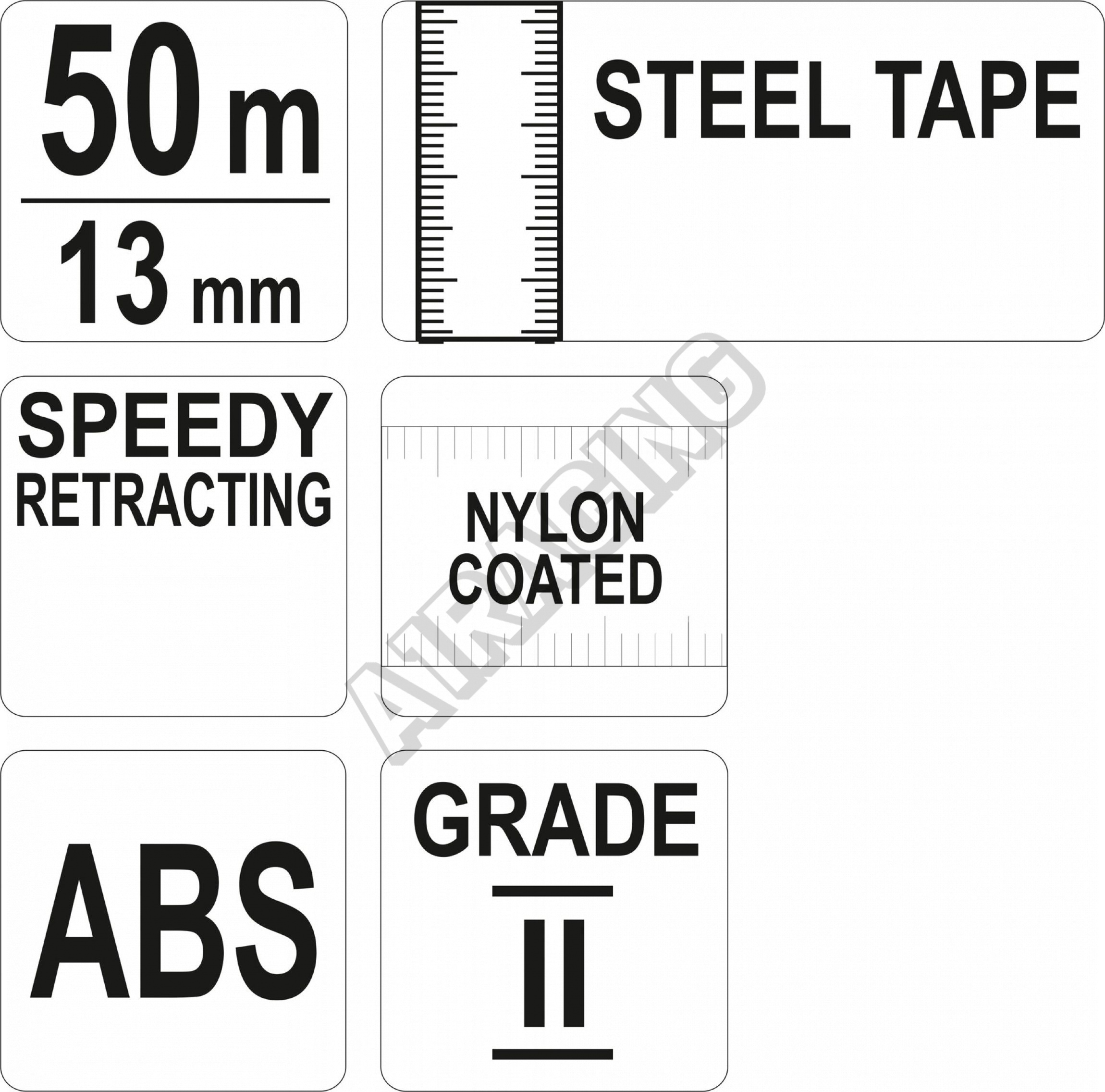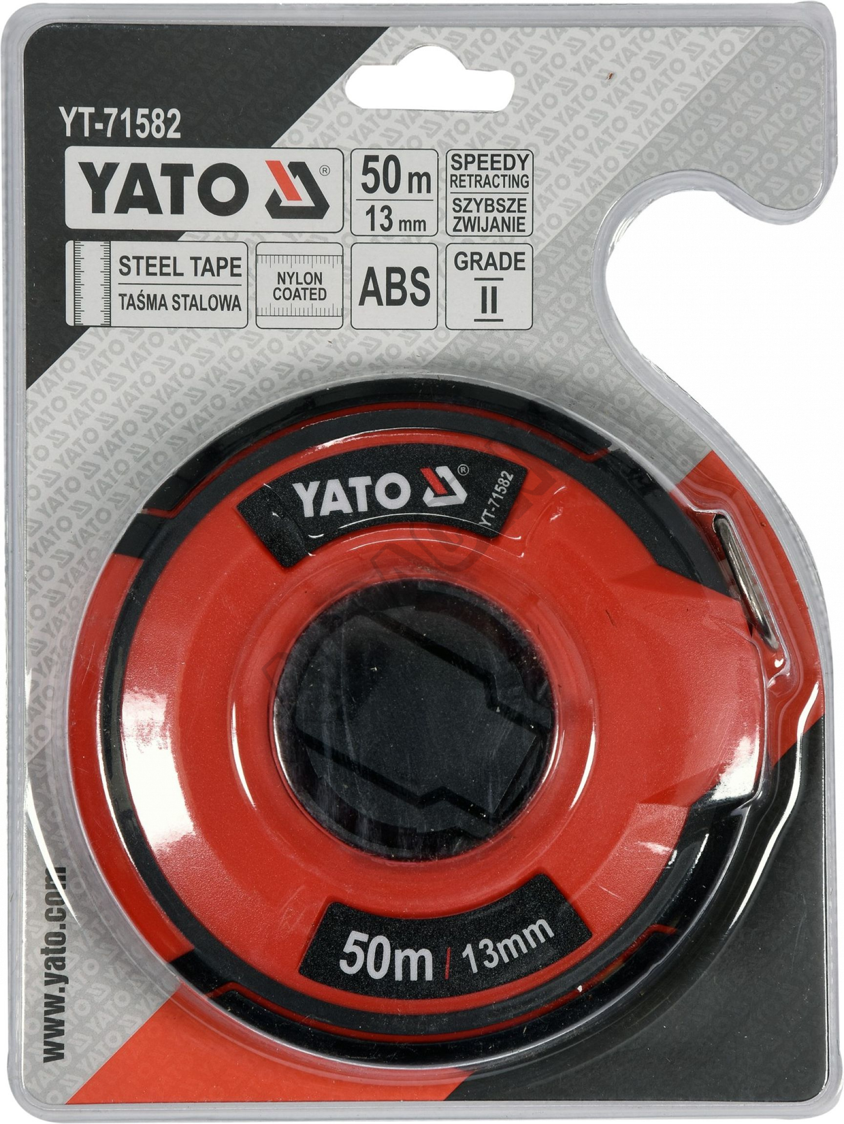 Meracie pásmo s dĺžkou 50 m so šírkou 13 mm.