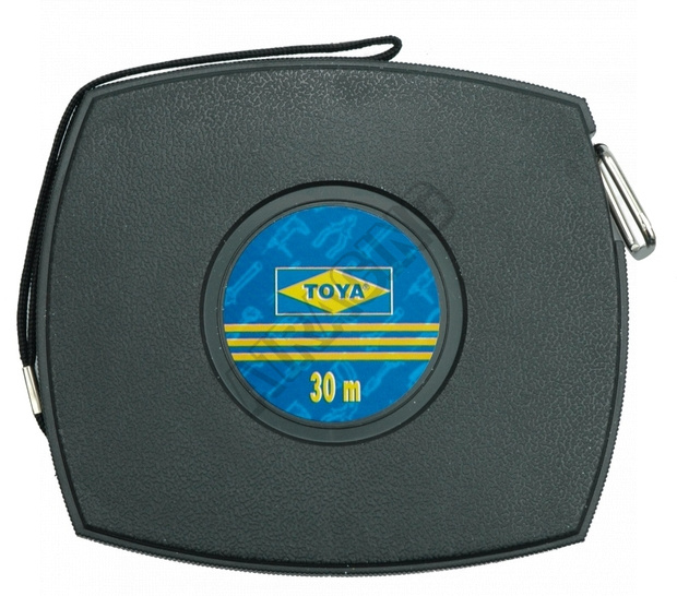 Ocelová páska dlouhá 50 m a široká 10 mm, zakončená kovovým „očkem“. Pouzdro je vyrobeno z plastu s
