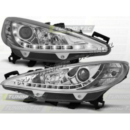 PEUGEOT 207 2006-09 PŘEDNÍ ČÍRÁ SVĚTLA DAYLIGHT LED CHROME
