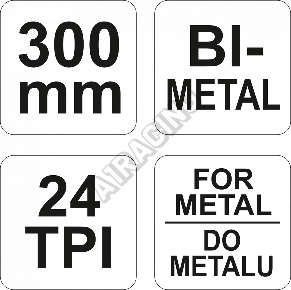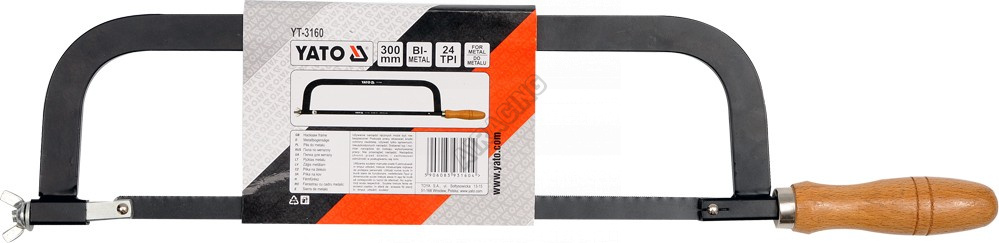 Pilka 300 mm vyrobená z ocelové ploché tyče, opatřená dřevěnou rukojetí. Napnutí pilového kotouče šroubem s křídlovou maticí. Sada obsahuje jednostranný bimetalový pilový list 300 x 12 mm s roztečí 24 tpi.