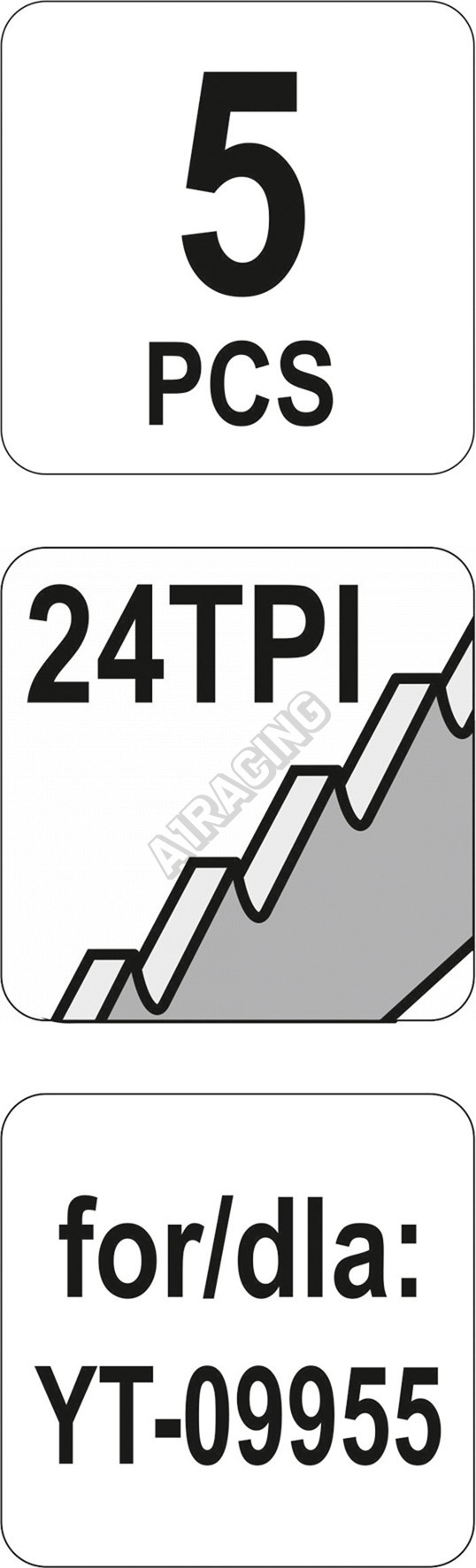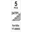 Sada je složena z 5 kusů pilových listů z HSI oceli určených pro řezání kovů, plastů a dřeva. Vhodné pro pilu YT-09955.