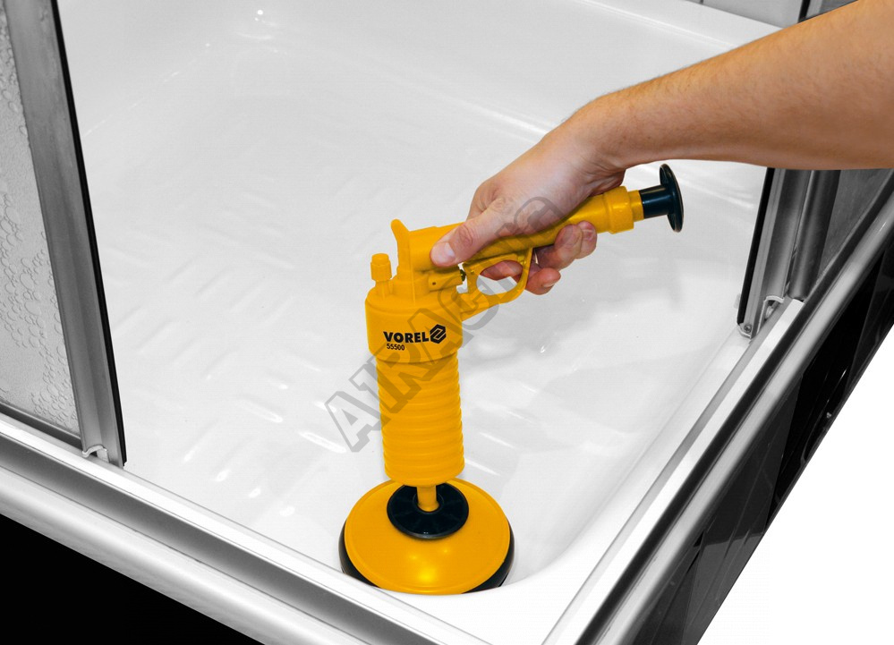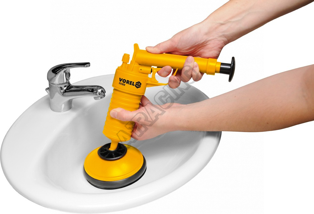 Tlakový čistič odpadů, který funguje tím způsobem, že se natlakuje vzduch zabudovanou pumpou do tlakové nádoby a uvolněním spouštěcího tlačítka se vystřelí nahromaděný vzduch do ucpaného odpadního potrubí. Tento postup se několikrát zopakuje, dokud se odpad zprůchodní. Tento způsob nevyžaduje žádné agresivní chemické přípravky a tím je velmi šetrný k životnímu prostředí. V příslušenství jsou dvě těsnící gumové hubice, které obsáhnou všechny sifony. Velká guma má průměr 135mm, malá 63mm.