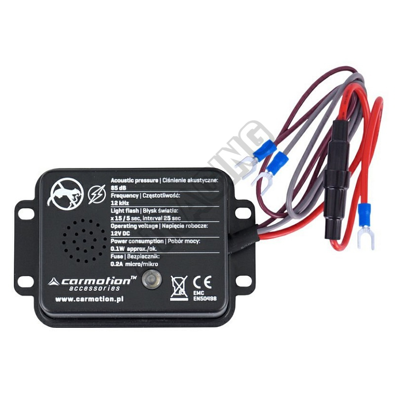 Odpudzovač hlodavcov vytvára zvuk o frekvencii 12 kHz v intervale 15 sekúnd. Táto vysoká frekvencia vedie k tomu, že sa hlodavce nepriblíži k autu. Namontovanie pomocou skrutiek alebo obojstrannej lepiacej pásky.