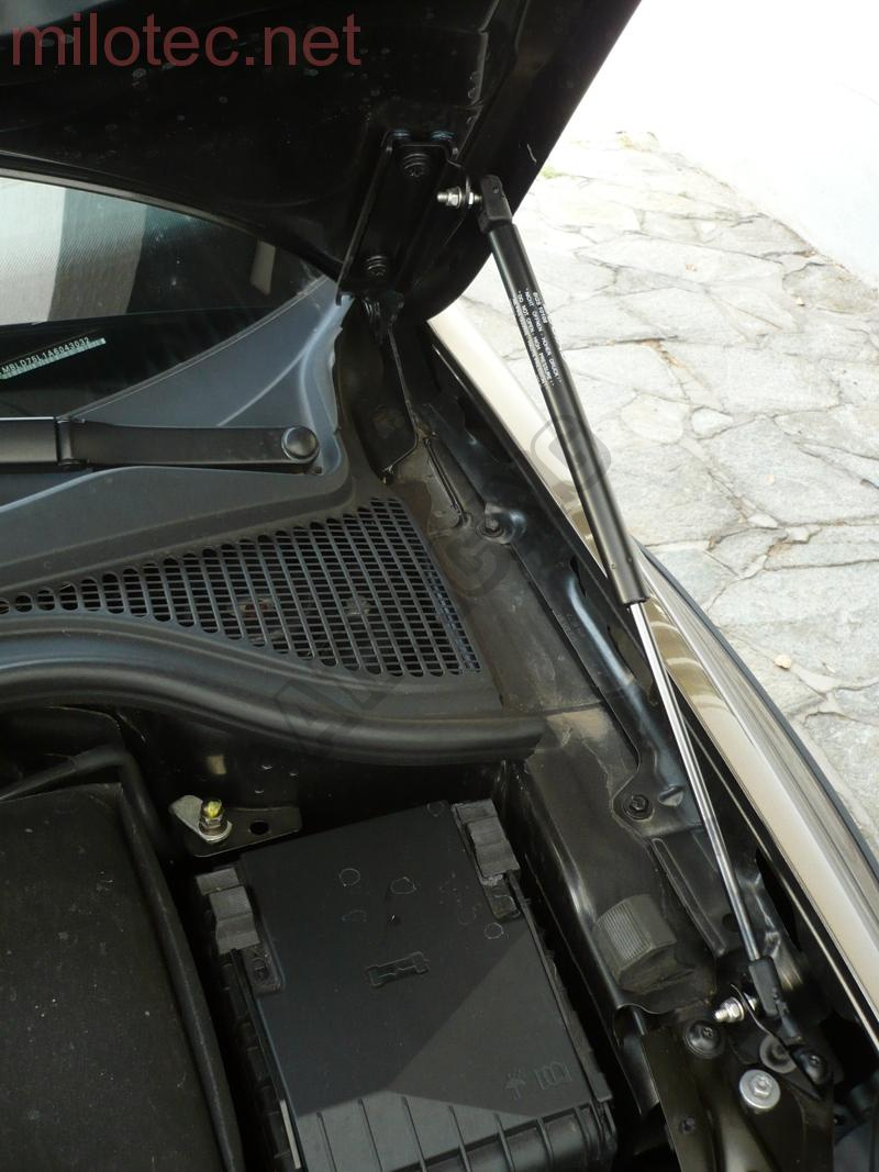 Po odjištění kapoty motoru se díky namontované plynové vzpěře Milotec kapota daleko snáze vyzdvihne a po vyzvednutí sama drží bez dalšího zajištění.
