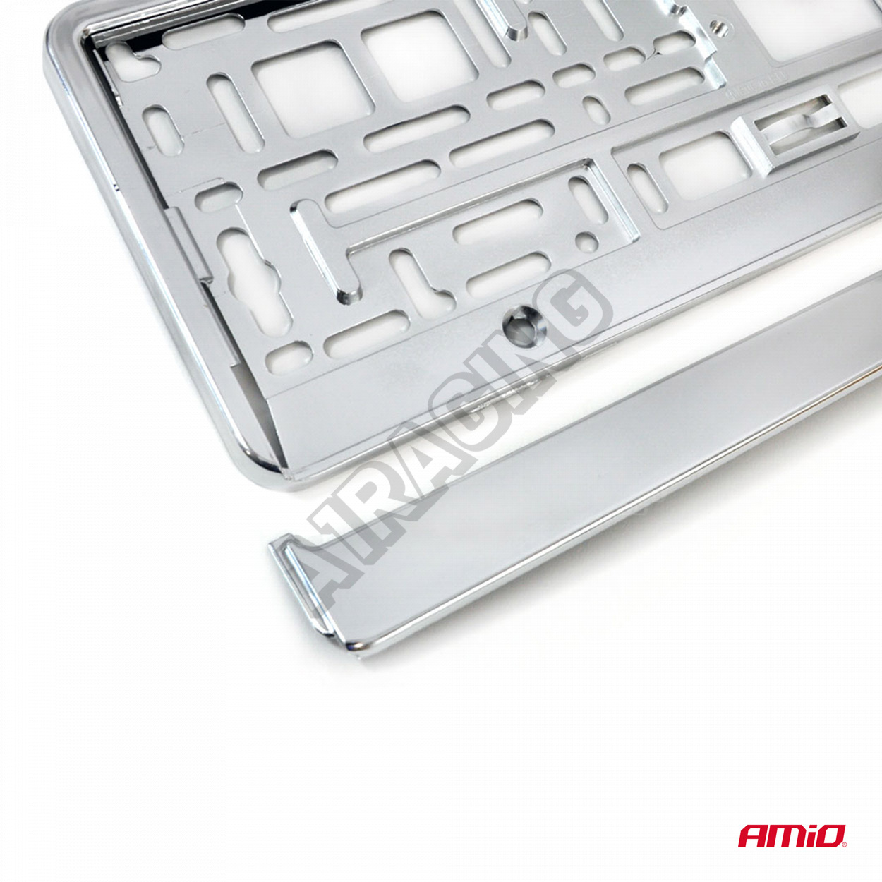 Plastová podložka pod štátnu poznávaciu značku alebo tabuľku registračnej značky, otvory pre univerzálnu montáž, povrch CHRÓM.