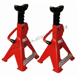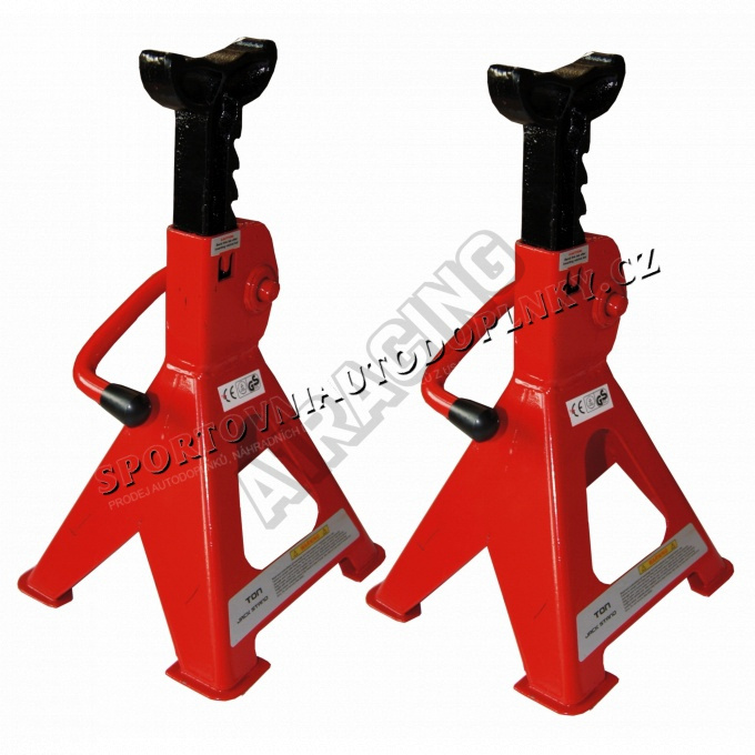 Podpěra: Pár stavitelných podpěr s pojistkou a celkovou nosností 6 tun / kus . Stavitelné podpěry jsou především určeny do autodílny, závodu, servisního střediska, či do vaší garáže doma.Centrováním zátěže na střed sedla stavitelné podpěry se vyvarujete nestabilitě a potenciálnímu pádu nákladu.Z hlediska bezpečnosti je navíc nutno nezatěžovat podpěry přes jejich jmenovitou hmotnost. Pak by mohlo dojít k jejich poškození a následnému pádu břemena! Stavitelné podpěry je nutné používat v páru a na pevném a tvrdém podkladu, který má patřičnou nosnost pravděpodobného zatížení.Homologace TUV/GS.