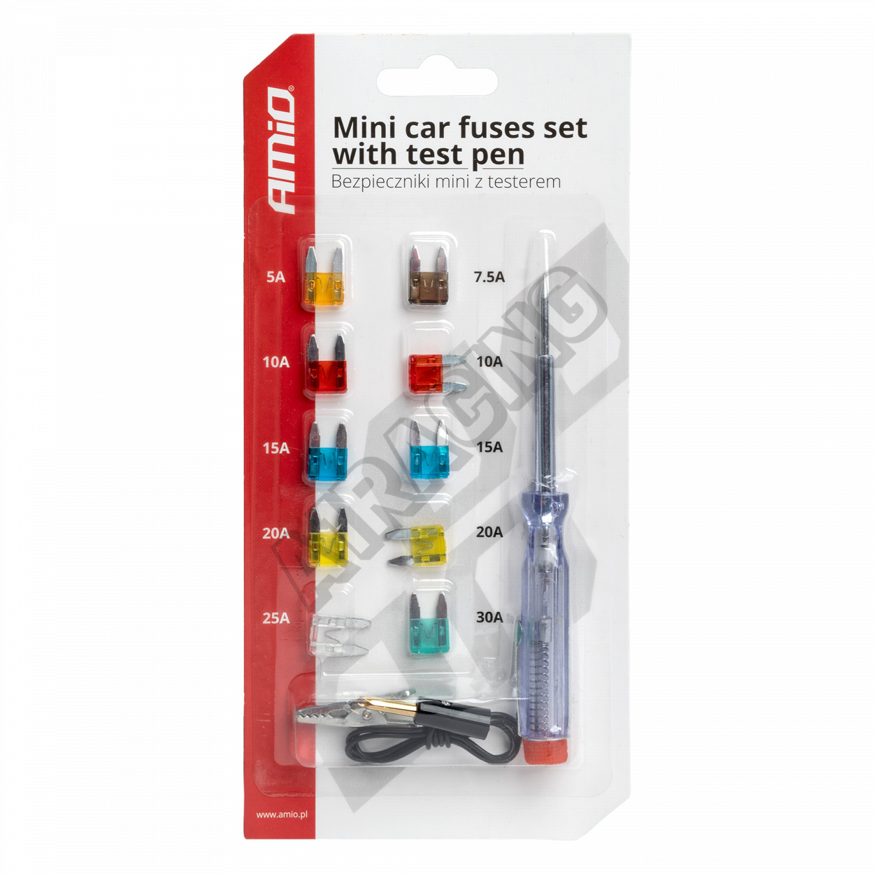 Poistky mini komplet sada 10 ks. + skúšačka napätia AMIO-0352432 Kč