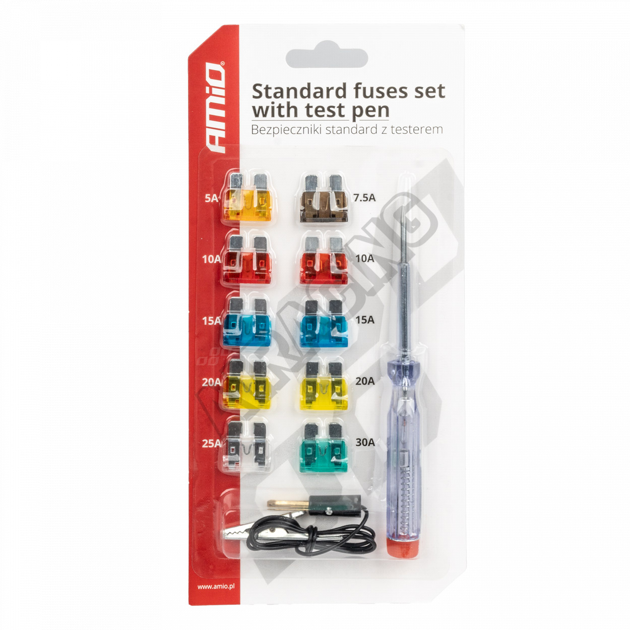 Poistky štandard sada komplet 10 ks. + skúšačka napätia AMIO-03523