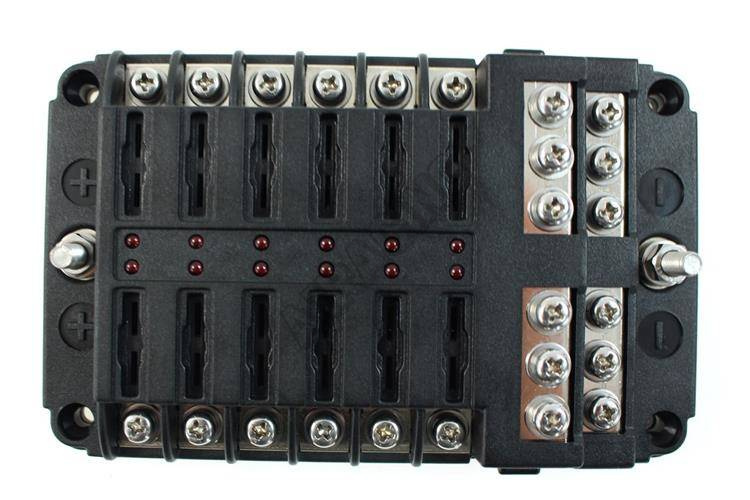 Poistná skriňa na 12 poistiek Praktická poistná skriňa na 12V s priehľadným krytom. Počet držiakov
