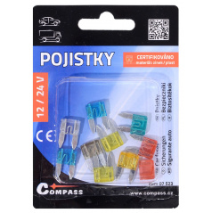 Sada 10 kusů nožových pojistek mini pro použití v automobilech (max. 24V).