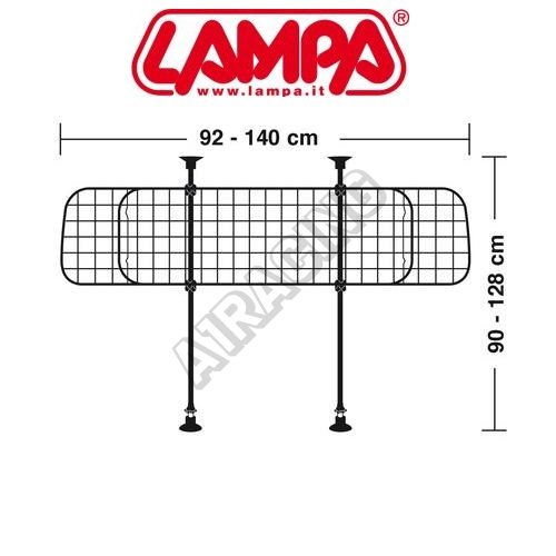 Táto polohovateľná mreža talianskeho výrobcu Lampa je určená hlavne pre prevoz psa, kde si jednoducho nastavíte najskôr výšku 90-128 cm, aby vám sieť dobre držala medzi stropom a podlahou a následne si nastavíte aj šírku 92-140 cm podľa potreby vášho auta. Vyrobené z ľahkej zliatiny. Montáž a demontáž mreže je veľmi jednoduchá.