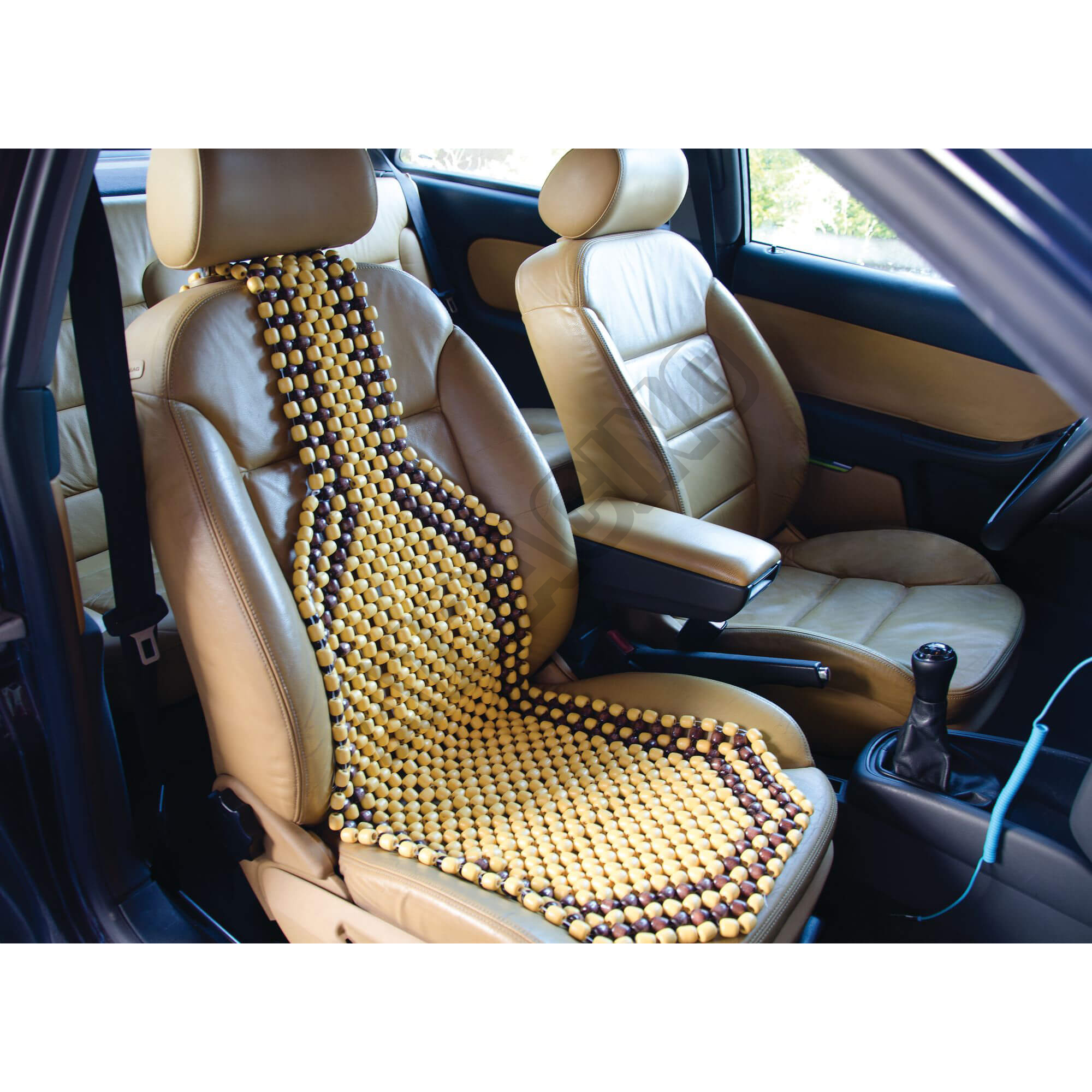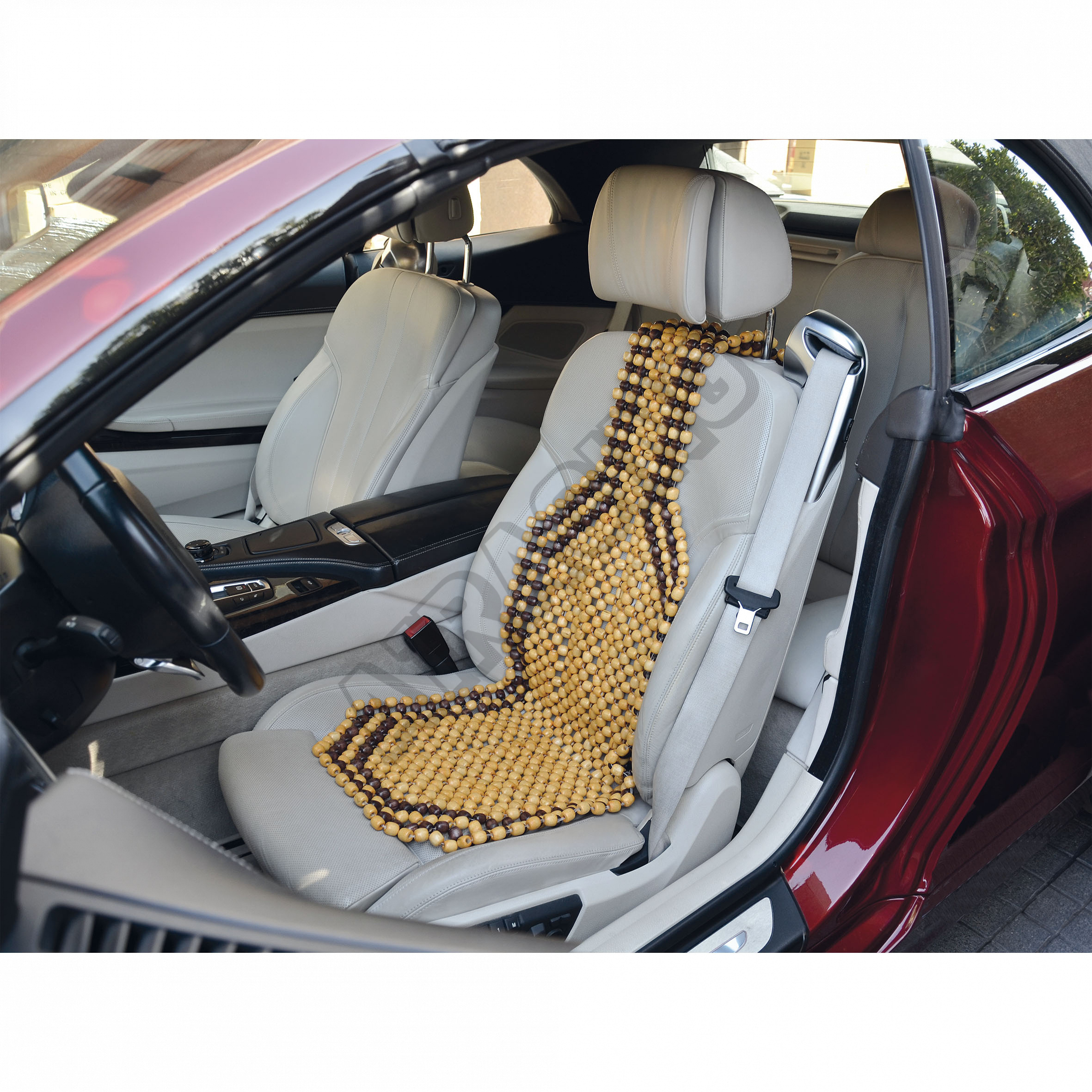 Vzdušný masážne poťah na sedadlo automobilu, univerzálne upevnenie na väčšinu bežne používaných sedadiel. Poťah je vyrobený z drevených guličiek, ktoré príjemne masírujú telo, podporujú krvný obeh, pomáhajú znižovať únavu i bolestivosť chrbta a umožňujú prúdenie vzduchu medzi sedadlom a chrbtom vodiča. Poťah rozložte na sedadlo a v hornej časti ho upevnite pomocou šnúrok za opierku hlavy. Ak poťah na sedadlo a / alebo akejkoľvek časti jeho upevnenie nebudú prekrývať vyústenie airbagov v operadle sedadla (pozri dokumentácia vozidla), je možné poťah použiť aj na sedadlá so zabudovaným bočným airbagom priamo v operadle. Veľkosť poťahu: 127 x 38 cm.