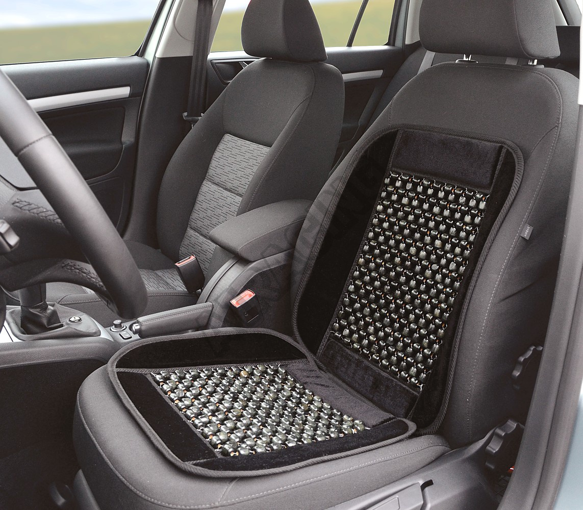Pohodlná podložka na sedadlo vodiča alebo spolujazdca. Vyrobené z čiernych drevených korálkov a zakončené odolným a estetickým velúrom. Pre zaistenie pohodlia a dlhého používaní sú korálky spojené silnou linkou a celý je podšitý sieťovinou.
