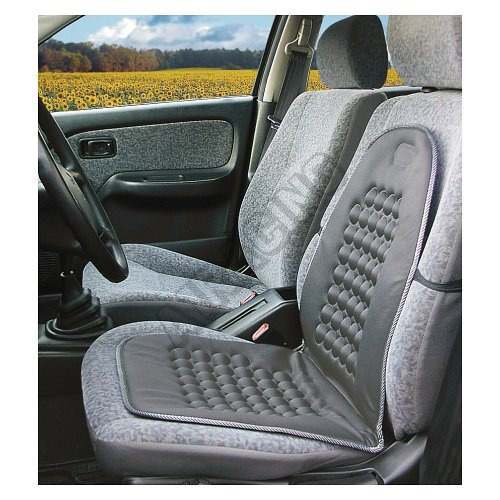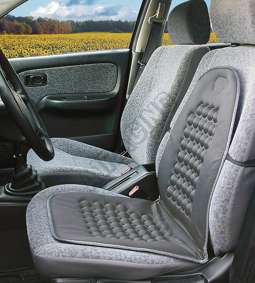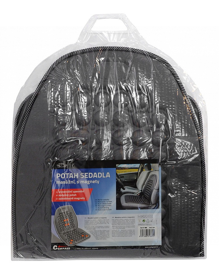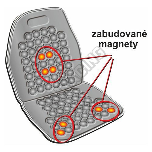 Masážní potah na sedadlo automobilu se zabudovanými magnety a s univerzálním systémem upevnění.