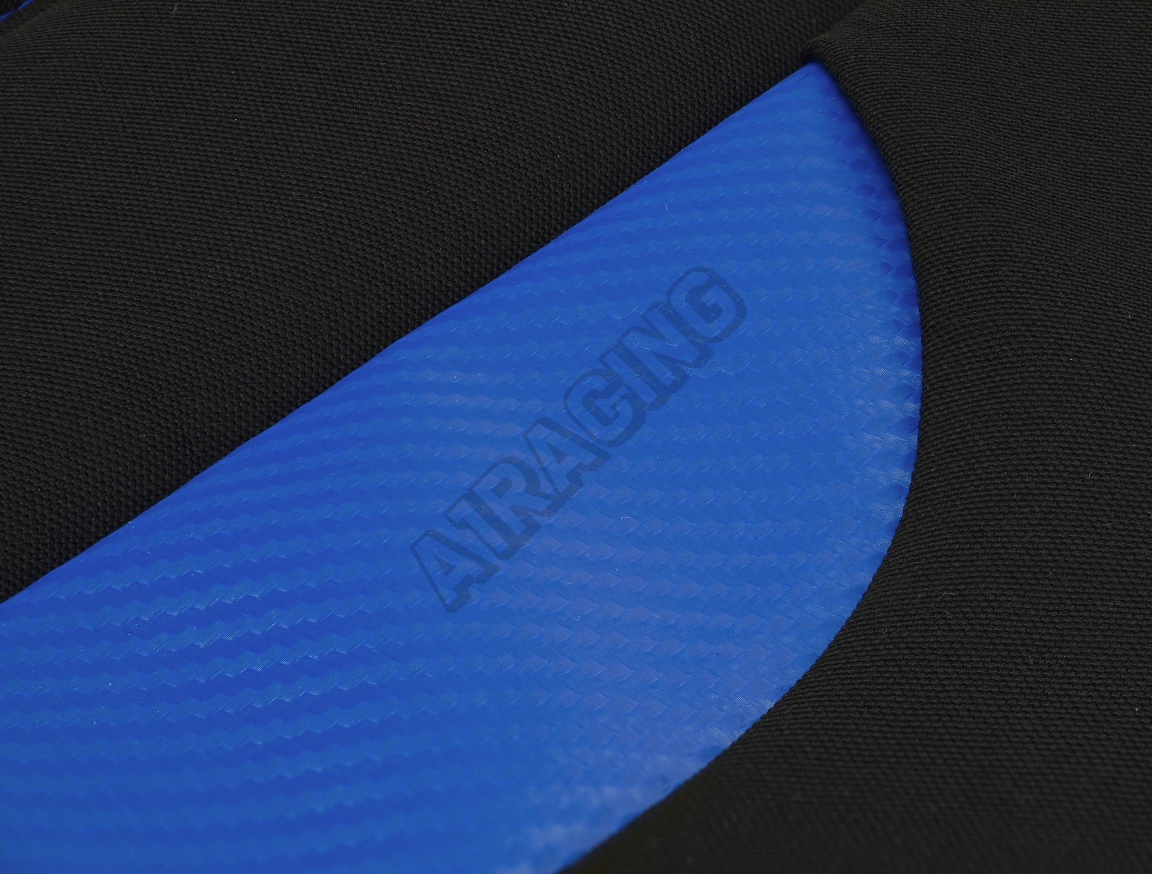 Komfortní potah sedadla s atraktivním lesklým modrým prvkem a modrým prošíváním. Potah je vyroben z