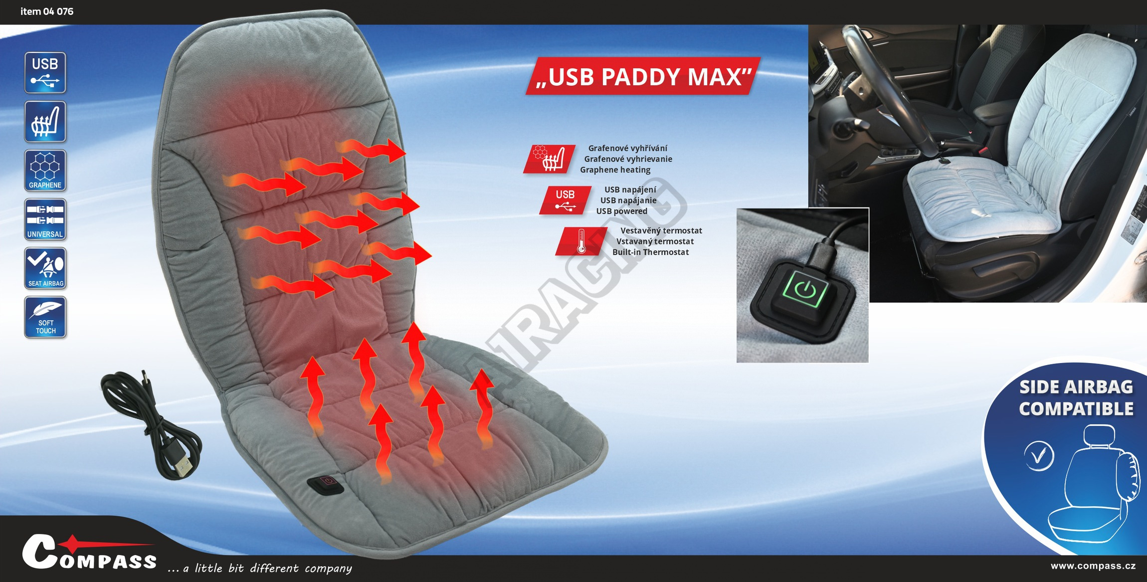 Potah sedadla vyhřívaný s termostatem USB PADDY MAX