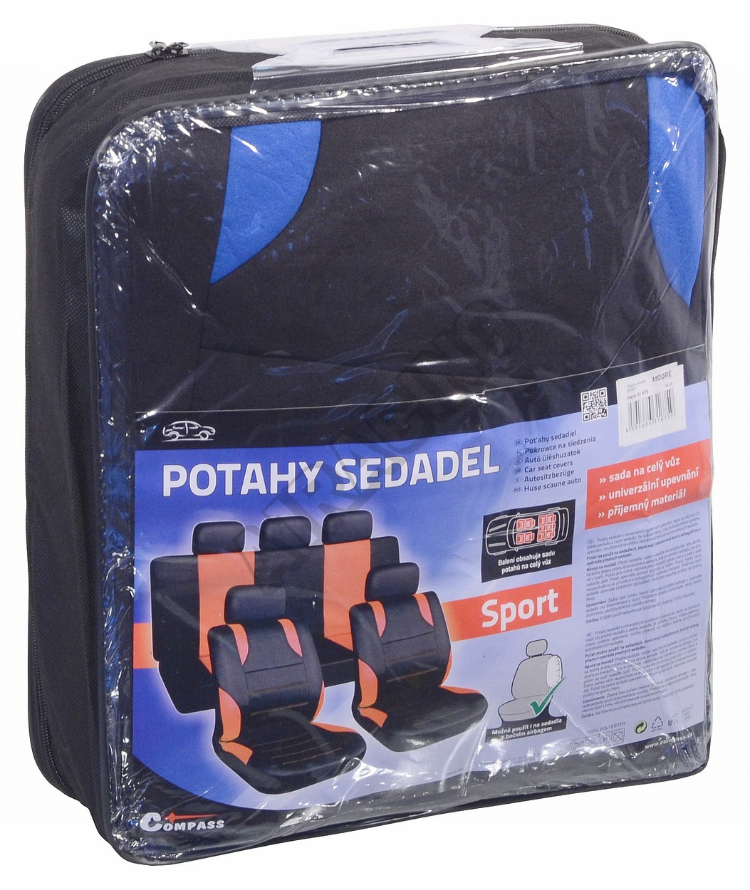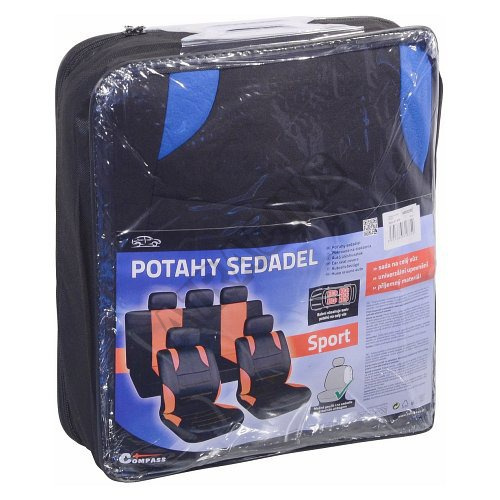 Poťahy sedadiel sada Šport modré airbag (2x predné sedadlo a zadné sedadlá, 5x opierka hlavy)