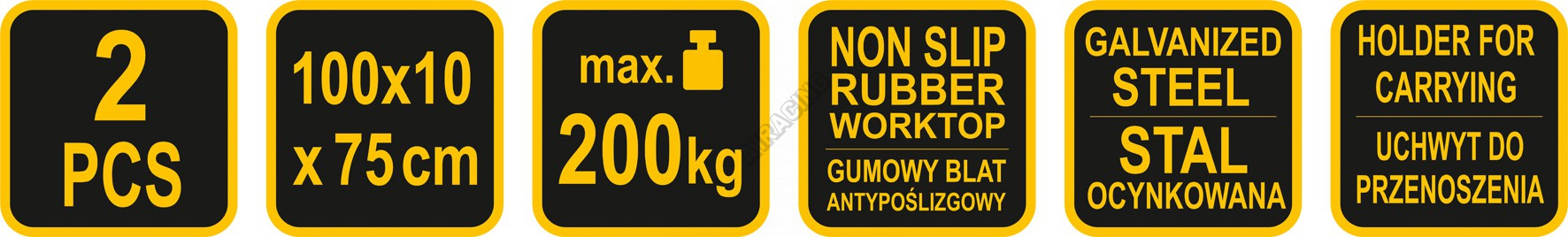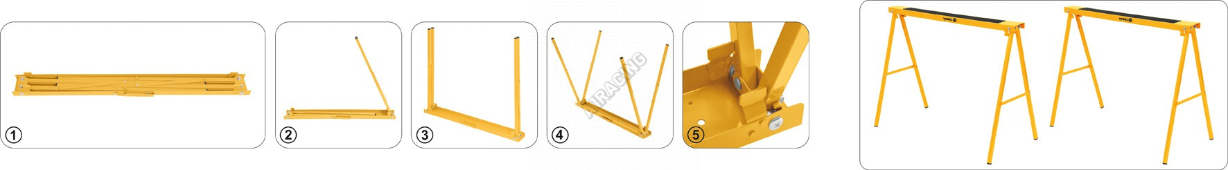 Sada stabilních pracovních základen se skládacím mechanismem. Přepravní rukojeť zajistí snadné přem