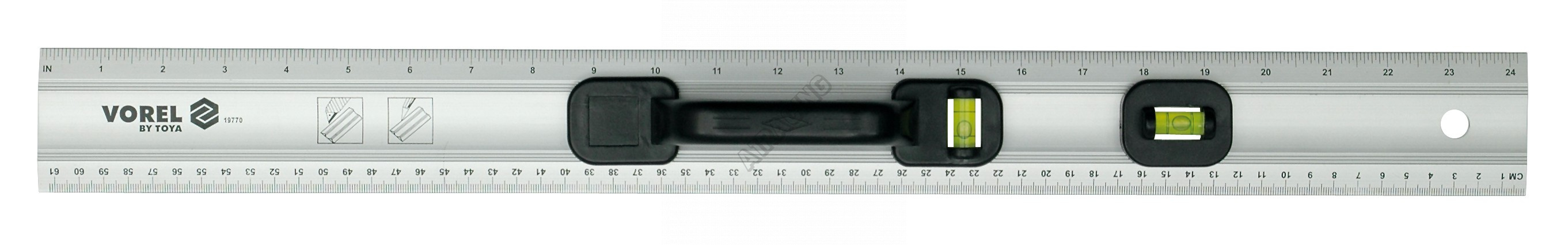 Pravítko aluminiové 600mm s 2 libelami • Aluminium • Délka 600 mm šíře 60 mm • Horizontální a verti
