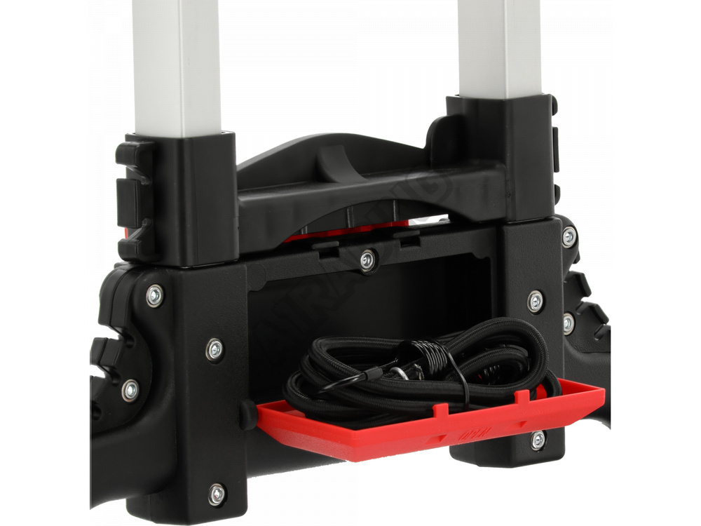 Výsuvná rukojeť má vodítka, která usnadňují umístění montážních gum, aby neklouzly. Na vodících rukojetích je umístěn zámek, který stabilizuje přepravované krabice. Zámek lze nastavit tak, aby se hodil do krabic různých výšek. Rukojeť je zakončena pohodlným plastovým úchopem. Sada obsahuje montážní gumičky.