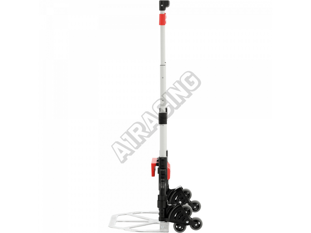 Lehký, praktický, skládací skladový vozík je vhodný pro přepravu předmětů po schodech. Ve složeném stavu zabírá málo místa, takže se snáze udržuje pořádek. Kolečka z TPR nepoškozují povrch, po kterém se kočárek pohybuje. Plošina vozíku je vyrobena z hliníku, díky čemuž je lehká a odolná.