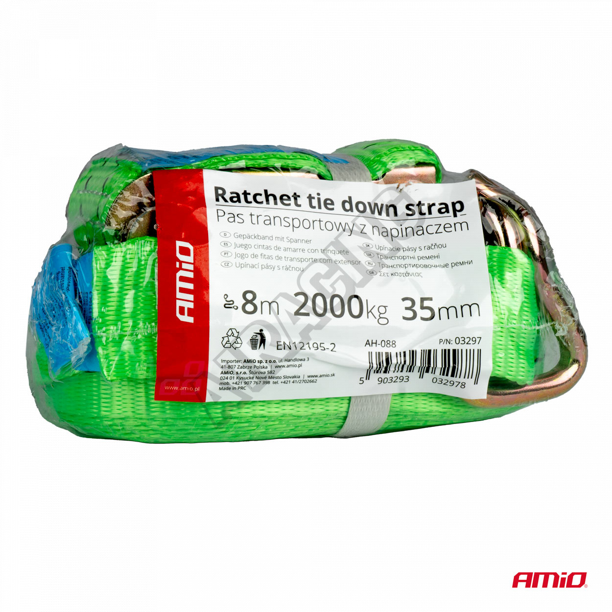 Kompletný dvojdielny dopravný pás s najvyššou odolnosťou. Pásy sa vyznačujú vynikajúcou trvanlivosťou a spoľahlivosťou po mnoho rokov používania. Každý detail výroby je starostlivo premyslený a na ich výrobu sa používajú pevné materiály, čo zaisťuje spoľahlivú ochranu prepravovaného tovaru a bezpečnú prepravu nákladu. Osvedčí sa ako pri profesionálnom použití vo firmách zaoberajúcich sa dopravou, na stavbách, tak aj pri súkromnej preprave. Všetky kovové prvky vrátane hákov a račny boli vyrobené z veľmi pevnej ocele odolnej proti korózii.