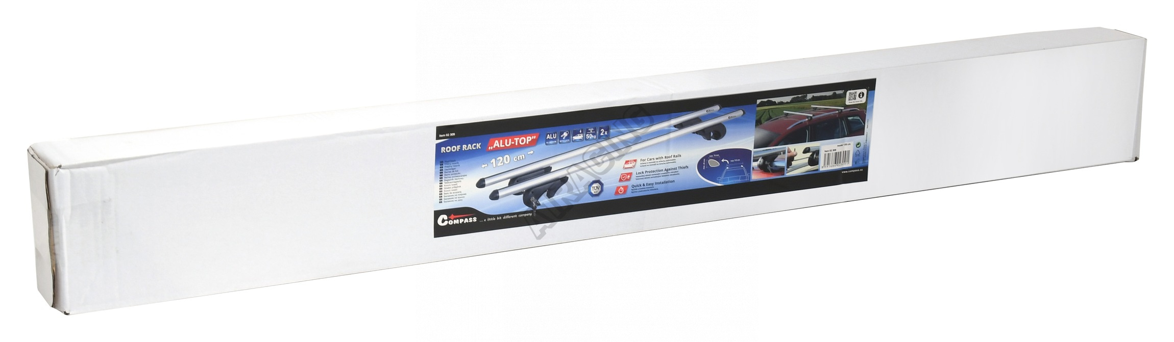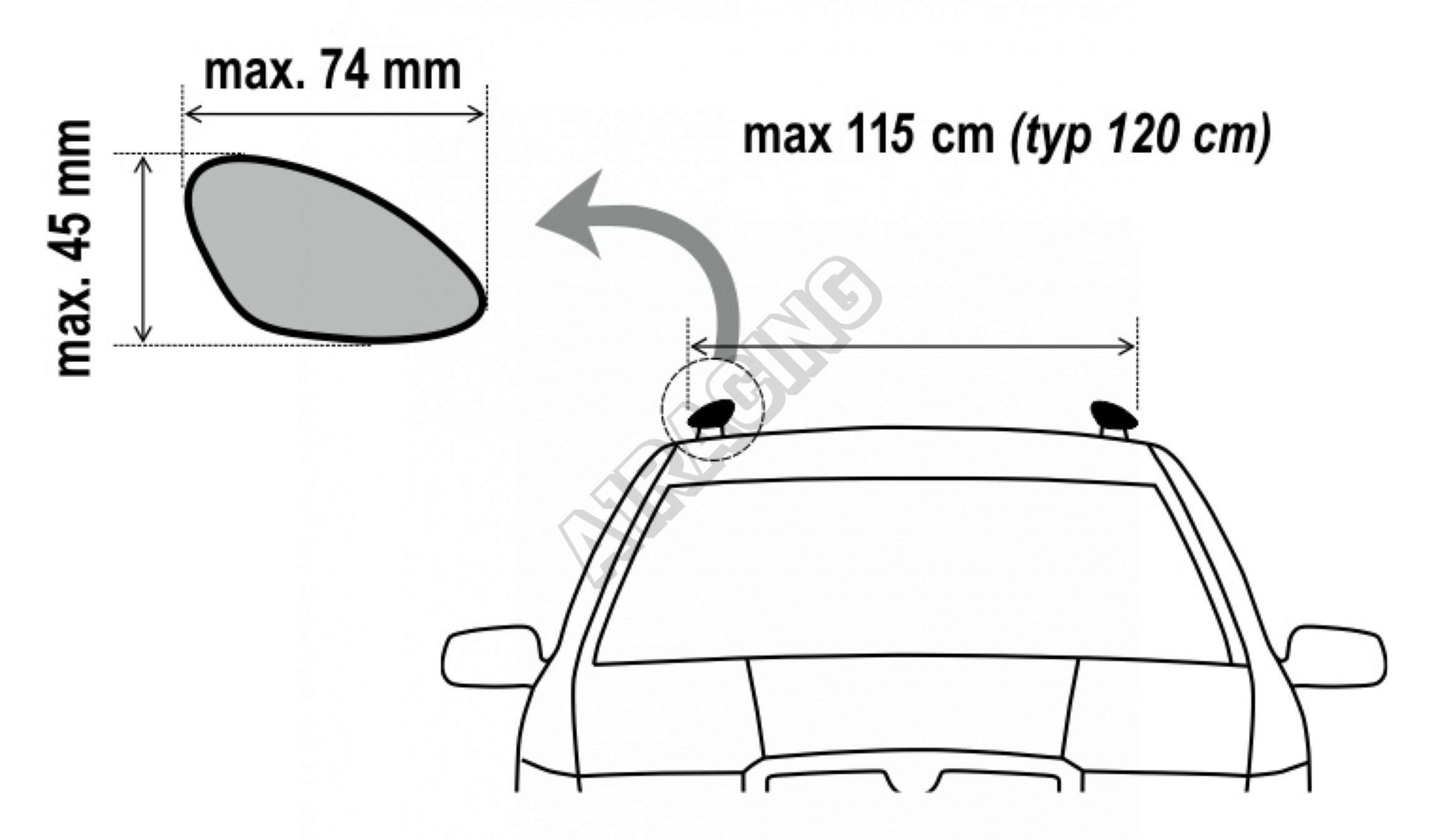 Příčník má délku 120 cm a je určen pro vozy s roztečí podélných nosičů až 115 cm a max. průřezem 45 x 74 mm.