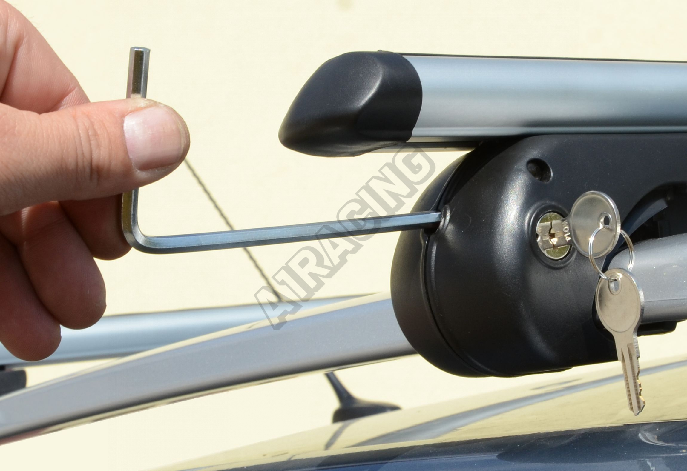 Vyznačuje se snadným upevněním. Stačí jen odemknout a pomocí přiloženého imbusového klíče příčník upnout či povolit.