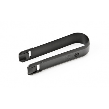 Originálne demontážne prípravok na krytky kolies v prípade výmeny kolesa. Plastová svorka sa na krytku nasunie tak, aby jej vnútorné jazýčky dosadli na nákružok krytky. Svorka sa ľahko uloží do priehlbne rezervného kolesa medzi ostatné náradia.