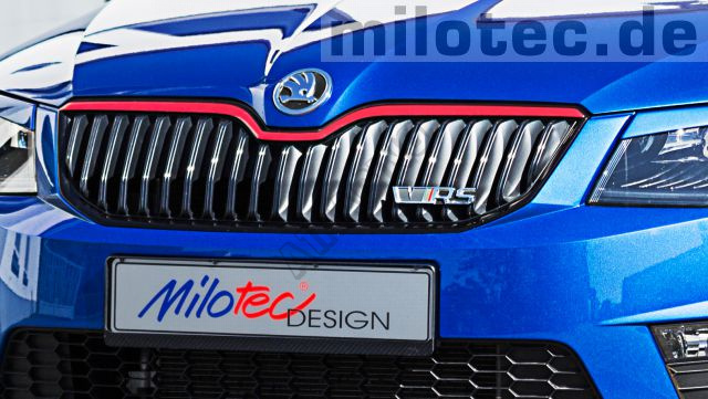 Racing lišta na prednú masku - červená - Škoda Octavia III (všetky modely) Dekorativní RS lišta před