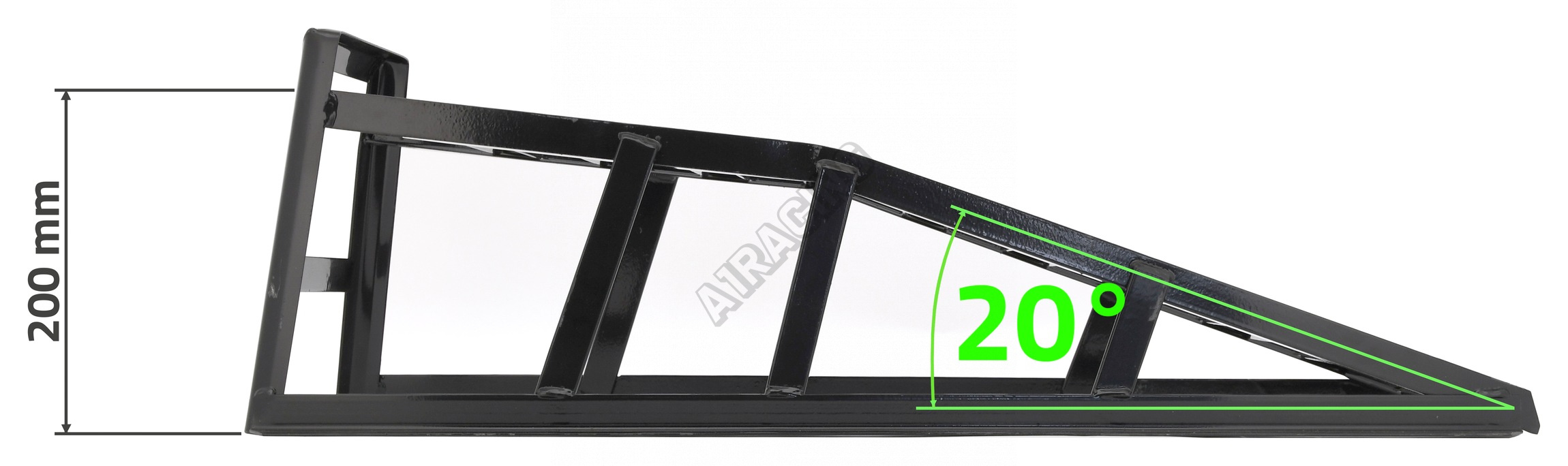 Rozměry nájezdu činí 83 x 31 x 27 mm. Maximální zatížení až 1000 kg zajišťuje stabilní konstrukce z oceli, včetně hustě rozmístěných vzpěr a klínů.