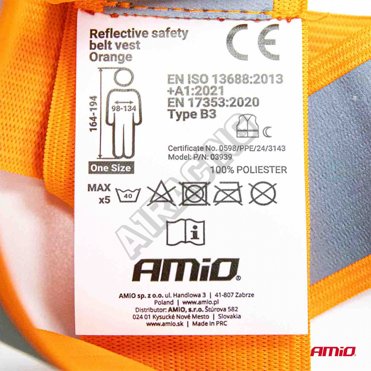 Reflexné oranžové traky cestná reflexná vesta AMIO-03939