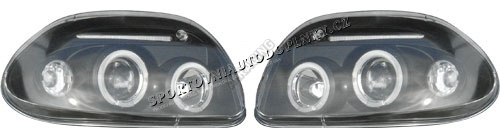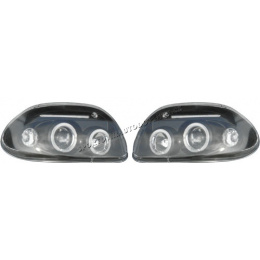 Přední světlomety čiré s parkovacími světly ve formě angel eyes kroužků a světelných proužků. Pro modely roku 4/98-5/01