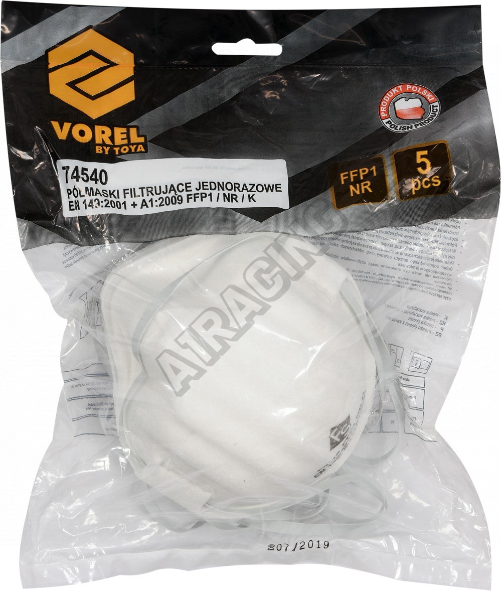 Filtrační protiprašná maska s třídou ochrany P1.