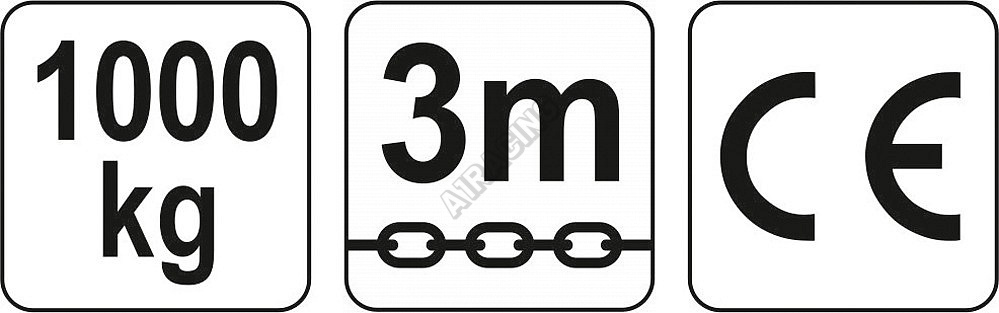 Reťaz a hák bol špeciálne navrhnutý pre výrazné zlepšenie odolnosti a bezpečnosti. Ovládacie reťaz má dĺžku 2 m a výška zdvihu je 3 m. Maximálne zaťaženie 1T.